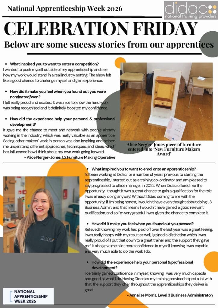National Apprenticeship Week 2026 is drawing to a close, but here’s at Didac we’re not done in celebrating! Join us by taking a look at some of our success stories.